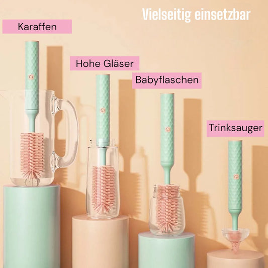 Entdecken Sie unsere elektrische Silikonbürste zur präzisen Reinigung von Babyflaschen. Inklusive verschiedener Aufsätze.